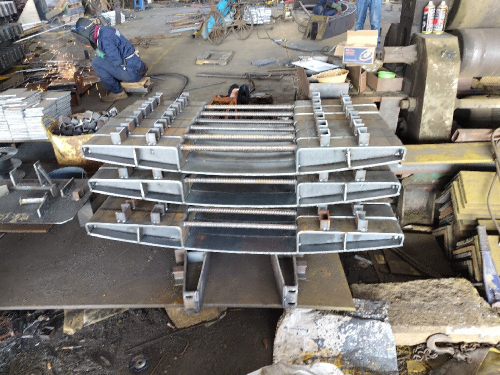 | 材質(zhì)工藝 | - 材質(zhì):Q345B(主流,屈服強(qiáng)度≥345MPa)或 Q235B(輕型荷載); - 成型:熱軋(整體性能優(yōu))或焊接(非標(biāo)定制,如圖中帶錨筋的弧形鋼枕); - 防腐:熱鍍鋅(鍍層≥85μm,鹽霧壽命≥1000h)或環(huán)氧富鋅漆(膜厚≥80μm,干燥環(huán)境)。 |