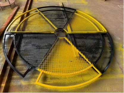 | 尺寸規(guī)格 | - 直徑:1.1~3.0m(常用 1.5m、1.8m、2.0m,適配樁基護(hù)筒直徑); - 中心孔:直徑 200~400mm(方便工具 / 材料穿入); - 分瓣數(shù):6~8 瓣(圖中為 6 瓣扇形網(wǎng)格); - 網(wǎng)格尺寸:50×50mm(Φ4mm 鋼筋焊接,防腳踏變形)。 |